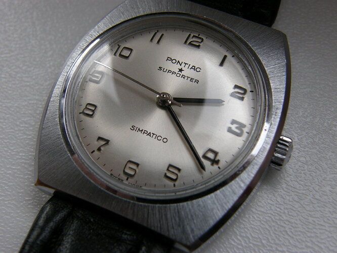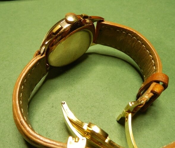 Het is "maar" een handopwinder, maar ik viel voor de mooie two-tone wijzerplaat. Wijzerplaat ziet er voor dit oudje, jaren 50 gok ik, nog prima uit. De kroon lijkt me niet origineel dus die moet nog wel vervangen worden. Wel lijkt hij tot nu toe netjes de tijd te houden, dus ik ben er blij mee!!
