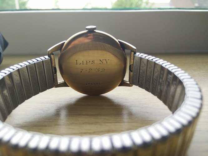 De firma lips gaf trouwens geen troep weg, het horloge is 18 karaats goud en is nooit gebruik (lag voor de sier in de vitrinekast bij kennis en bij mijn opa, nu ligt het weer bij mij in de vitrinekast