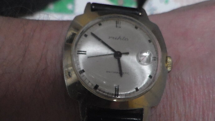 Vandaag gekregen van een buurman die ik vaak help met wat computer dingen, ik zag het horloge toevallig liggen en maakte een opmerking er over en hij wilde het direct aan mij geven als dank voor geleverde dienstenWat ik tot nu toe heb kunnen achterhalen is dat dit een redelijk zeldzaam horloge is van goede tot hoge kwalitieit dat werd geproduceerd tussen 1972-1973 en die van mij zou dan uit '73 zijn. De meesten kwamen op de internationale markt terecht ipv de Japanse.