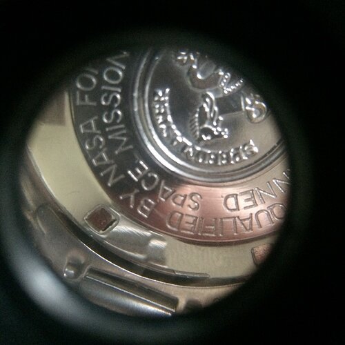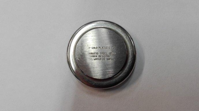 Hier heb ik een foto van een case back van de 145022-71. Alles is zoals het moet zijn (horizontale "Q", Sarif D en hoogpuntige "W" Alleen als je kijkt zie je dat de letters P en A de 'pootjes' zijn 'afgehakt'. Ik de vraag ook op het omegaforumnet gesteld, maar daar dachten ze dat het overpolijst was. Het is gepolijst, maar niet in die mate dat alleen dat stuk van de belettering helemaal is verdwenen. Daarom zou ik aan jullie willen vragen of jullie dit ooit eerder hebben gezien. Ik twijfel niet aan de authenticiteit van het horloge of de caseback, maar ik ben toch benieuwd of iemand dit eerder heeft gezien