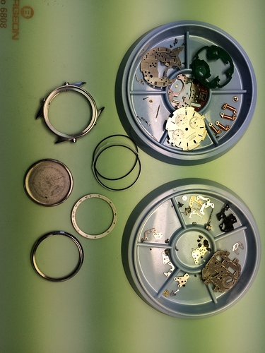 Ik heb een vraagje voor jullie. Ik heb gemerkt bij vol zonlicht, dat mijn NOS Yema SpationauteIII een vuil glaasje heeft langs de binnenkant. Leek me wel leuk om eens zelf op te lossen in m'n vakantie. Ik heb ervaring met batterijtjes vervangen en stiften uitwippen bij oude vijfjes, en vroeg me af of dit zelf te doen is?
