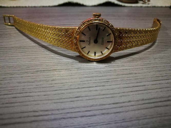 Daarnaast vroeg ik me ook nog af wat ik er aan kan doen qua servicen aangezien de wijzerplaat er een beetje viezig uit ziet en de vergulling/lak er een beetje van af komt. Ik dacht zelf aan: Alles er af poetsen, op een leren bandje leggen en misschien het uurwerk eens na laten kijken, dan kan ze hem zelf gaan dragen maar ik ben natuurlijk ook benieuwd naar jullie mening.