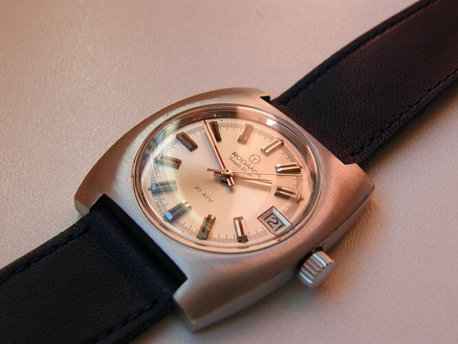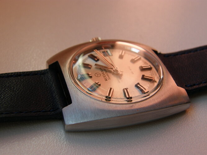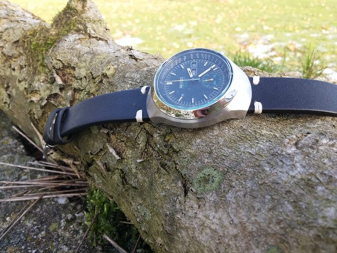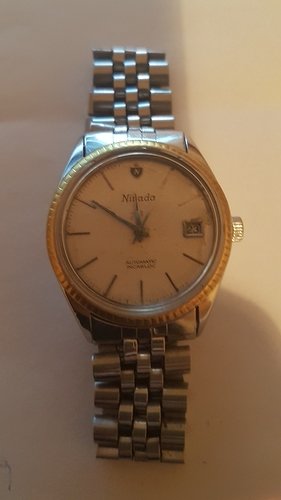 op een vintage Nivada in een wel weer heel bekend model. Maar ik zou jullie niet langer vervelen met dit te typen,tijd voor plaatjes(moet hem nog wel even reinigen).Dingetjes die ik wil aanpassen zijn het hoge glas,herstellen van band(erg uitgerekt) en het kroontje.