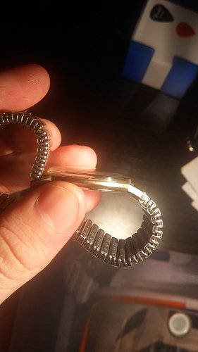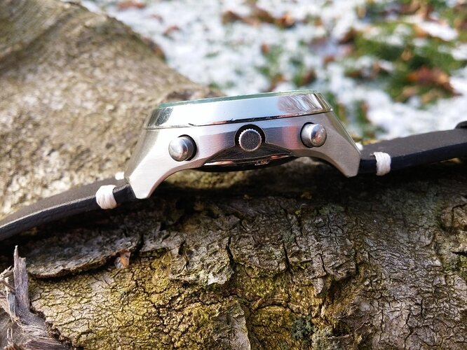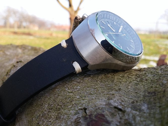 Ik heb het horloge op een leren band gezet wat hem erg goed staat in mijn ogen. Hoewel ik nog twijfel over het bestellen van een Fishbone bracelet.. Maar ik ben bang dat een gloednieuwe stalen band niet past bij het karakter wat de rest van de klok heeft.. Maar daar kom ik tzt nog wel over uit