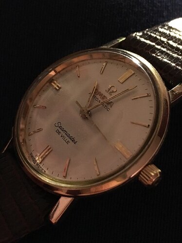 Ik kan via een kennis deze Omega Meister Seamaster kopen (zonder papieren) In principe zou dit horloge gesmolten worden voor de goudwaarde van de kast. Ik heb hem even kunnen opwinden en hij loopt.