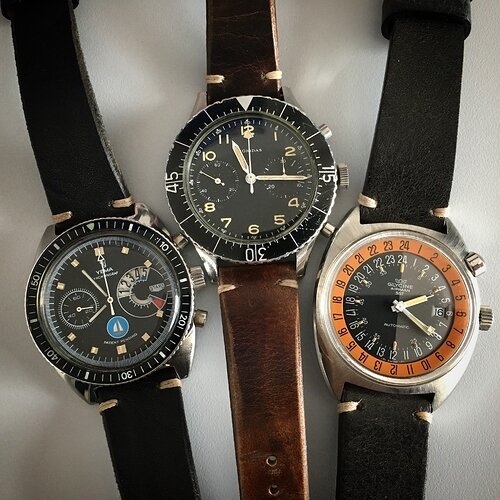 http://www.calibre11.com/heuer-1000m-spirotechnique/3/De Auricoste die ik al had is grotendeels identiek aan de Tag, behalve uiteraard het merkteken en iets andere wijzers.